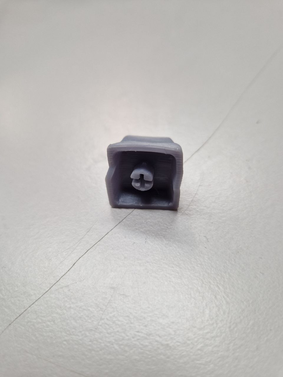 Even though one corner was warping strongly, the results of the first print attempt were promising. It is an SA-profile keycap, sliced with ChituBox with 0.1mm layer height.