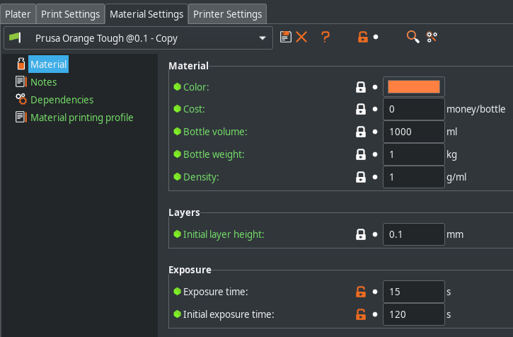 I'm taking all the settings I can from the included .ini files, which are layer height, initial layer height, exposure time and initial exposure time.