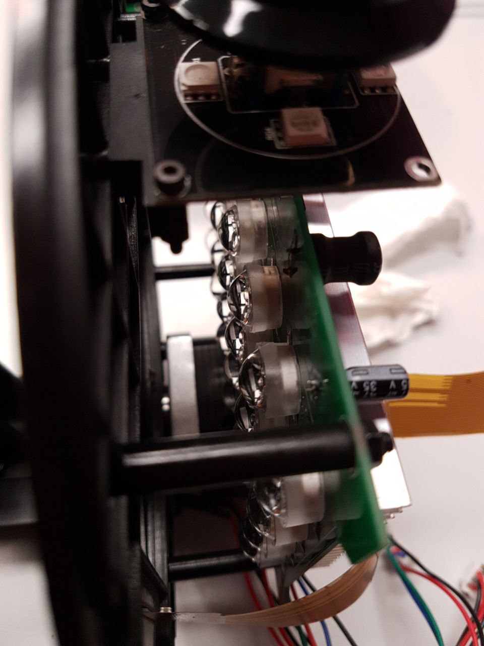 This requires removing the base of the housing by unscrewing the outer four hex screws from the top, as well as the three hex screws on the bottom below the Z axis arm. Now we are allowed access to the encoder board.